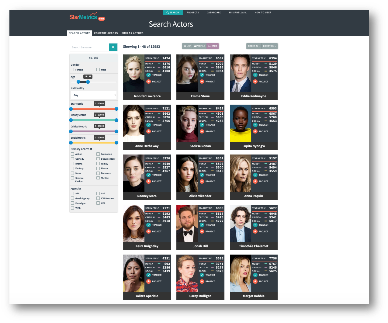 That's why we built StarMetrics, with the intent to be the world’s premiere entertainment talent analytics platform. In a media landscape with more and more competing platforms and channels, it's difficult to know the answer to simple questions like: how popular is a given star or show? How many people actually saw this film, or know this actor? With StarMetrics, we analyze all the global data - and provide answers and data-driven benchmarks. Below, we walk you through some of our key features.
